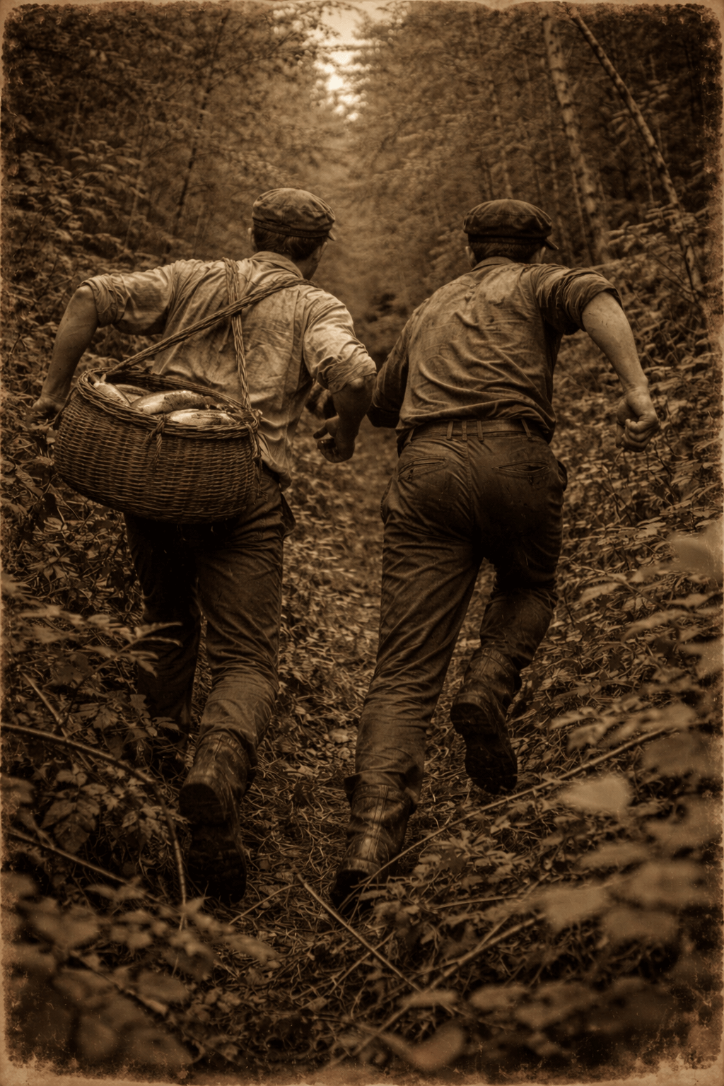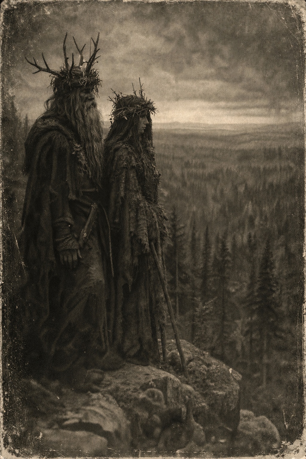 De løp i forskrekkelse – men stien forsvant. Trærne vred seg, røttene grov seg over stien, og stein flyttet seg med nattens pust. Ingen så dem siden. Det sies at de ennå går i ring under åsene, blinde for alle vann, dømt til evig leiting etter noe de aldri mer kommer til å finne.