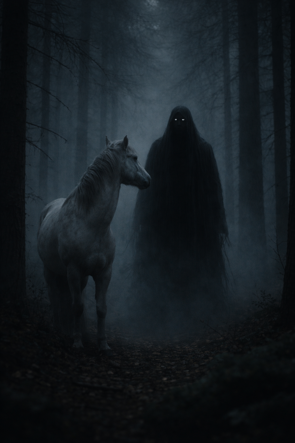 Hestene som dro tømmer fra hogstfeltet øst for Dipen, stanset brått ved veikanten – øyne vidåpne og hovene som frosset fast i bakken. Trosset man dem og presset kinnet mot grimen for å ane hva de så, vendte aldri sjelens lys tilbake.