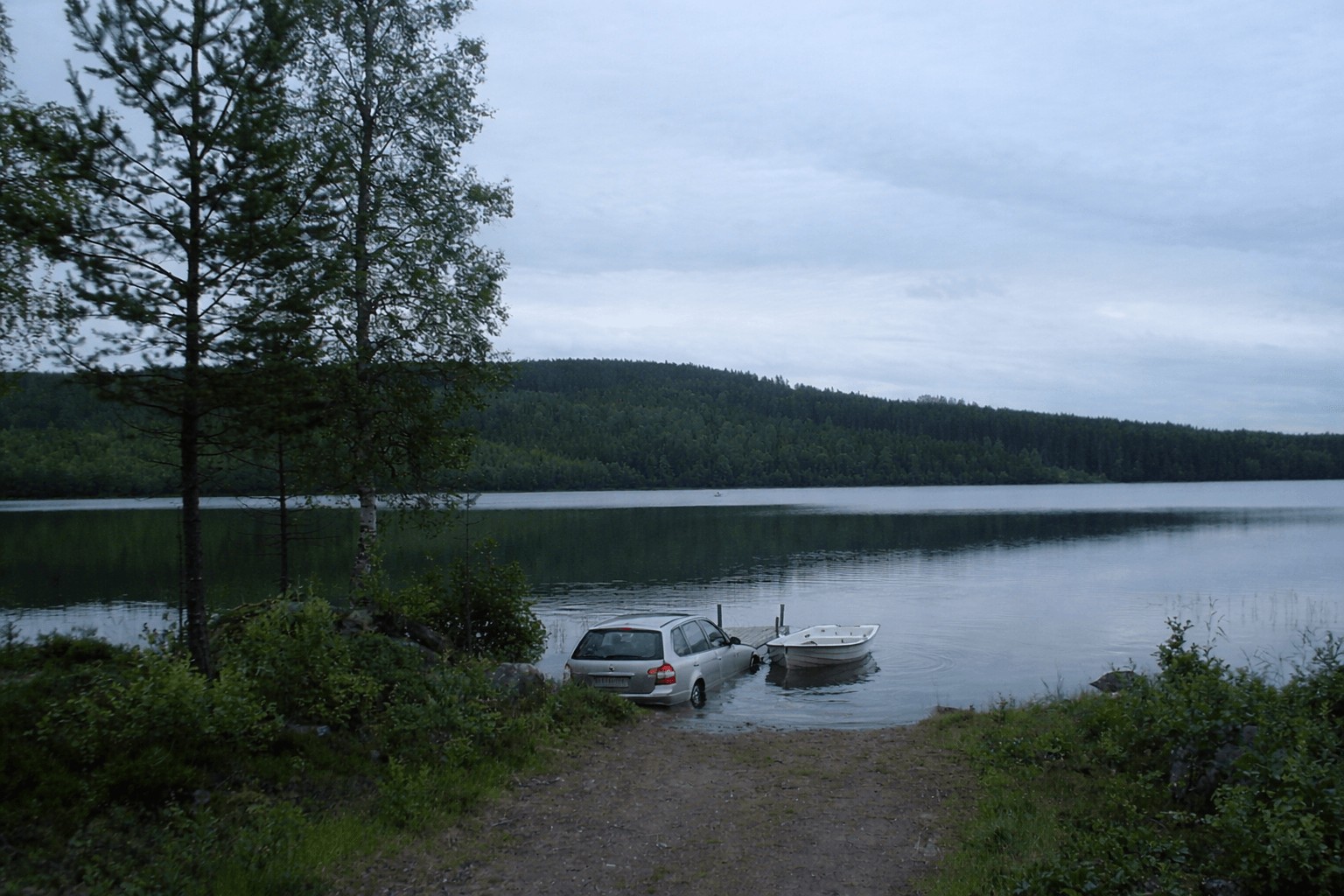 Neste morgen sto bilen deres ikke lenger på land. Den sto langt ute i vannet, dørene var låst, håndbrekket var på og uten hjulspor, som om den var løftet dit av uante krefter. Bomvokteren i Gravberget, Reidar Skogli fortalte at han måtte kalle på maskinhjelp for å dra bilen til byfolka opp igjen.